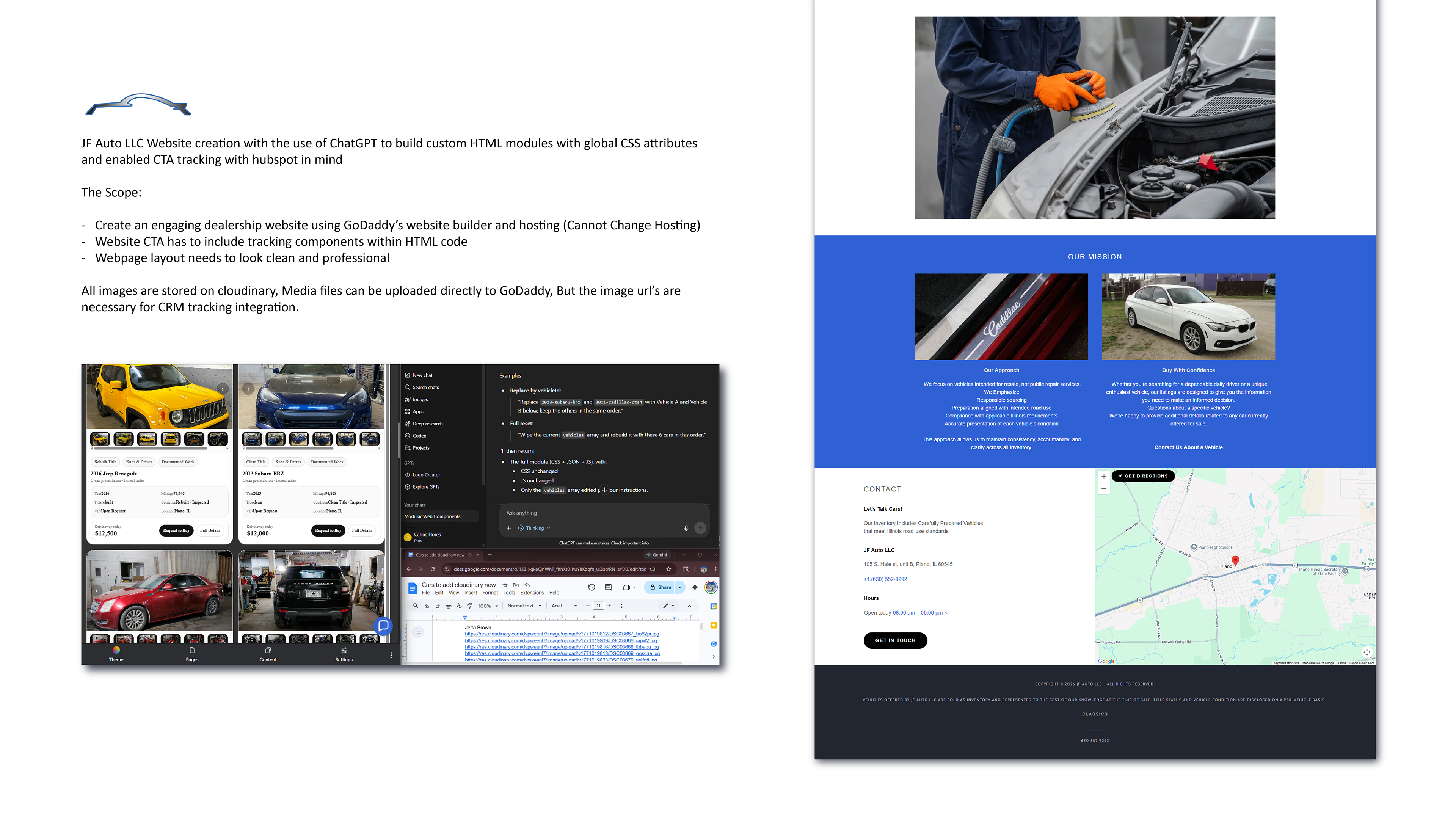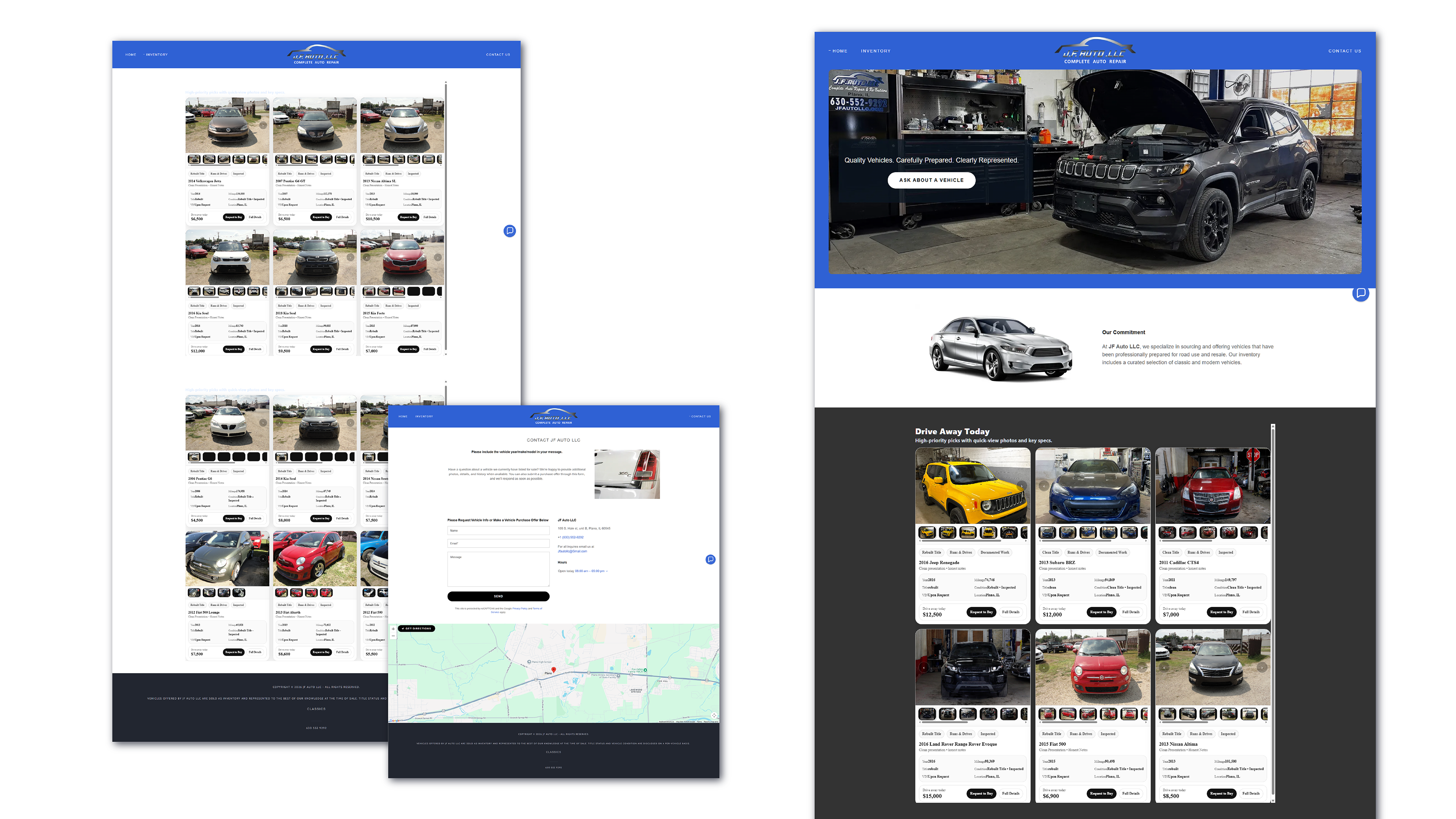 Rebuilt JF Auto’s web presence from static brochureware into a performance-oriented lead engine, integrating custom-coded modules with CRM tracking and refreshed brand identity.